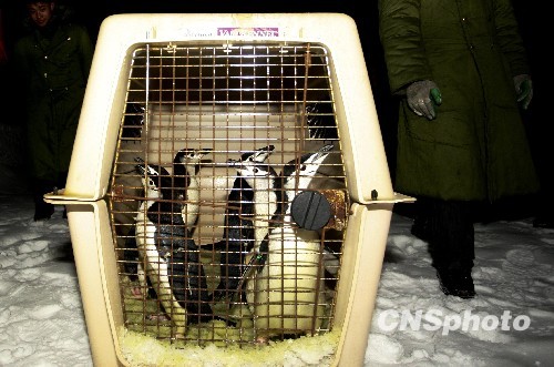 2010年1月22日夜,来自青岛极地海洋世界的十只金图和帽带企鹅入住北京玉渊潭公园。它们在经过一段时间的适应之后将成为北京玉渊潭首届冰雪文化节上的大主角。