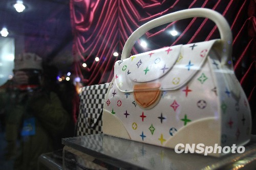 图为用巧克力打造的LV箱包。中新社发 富田 摄