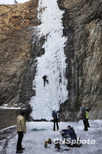 图:山东日照冰瀑奇观引来攀冰客(3)