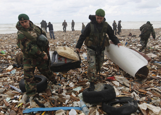 埃塞俄比亚航空公司25日证实,该公司一架波音737客机当天凌晨从黎巴嫩首都贝鲁特国际机场起飞后不久坠毁于地中海。据美联社消息,搜救人员目前已在埃塞俄比亚客机出事海域发现至少18具遇难者遗体。图为搜救人员找到的一些飞机残骸。
