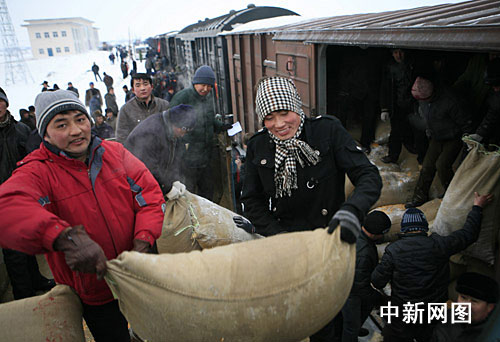 为救济新疆阿勒泰地区受灾民众,乌鲁木齐铁路局26日通过奎北铁路专列,运送救灾物资首次驶入阿勒泰地区福海县,为阿勒泰地区输送1760吨玉米等饲料。新疆奎北铁路(奎屯至北屯)全长460多叶尔江公里,铁路全线共设车站22个,是新疆2009年开通运营的新建铁路中最长的一条铁路。叶尔江摄