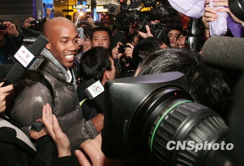 1月26日晚,NBA96黄金一代的马布里抵达山西太原武宿机场,马布里此次来华将加盟CBA山西汾酒男篮队。来自全国各地的200记者和球迷到现场迎接这位CBA史上最大牌的外援的加盟。