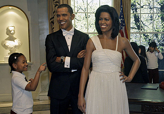 1月26日,位于美国纽约的杜莎夫人蜡像馆展出了美国总统奥巴马和第一夫人米歇尔的蜡像,引来众多游客参观。