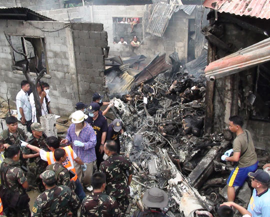 菲律宾一军用飞机坠入居民区 8名士兵遇难(2)