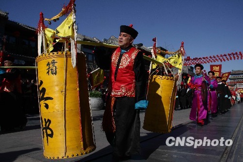 1月31日,以“欢乐太平年”为主题的踩街行进表演在北京前门步行街开场。来自区县的10支群众文艺队伍约300多名群众演员参与的狮虎表演、非物质文化遗产展示等节目,吸引了近3000名观众驻足观看。