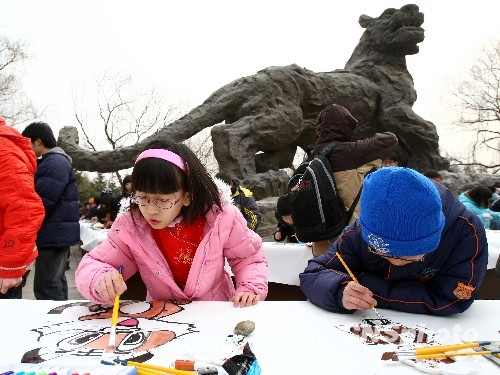 图:北京300人齐画虎破吉尼斯纪录(2)