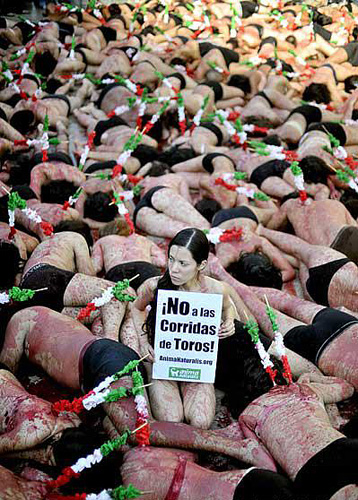 图:墨西哥动物保护成员“裸体”抗议斗牛(2)