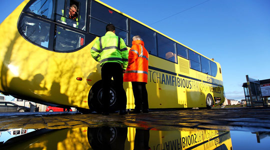 英国两栖巴士"试水" 媒体面前尴尬熄火(4)