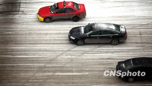 车辆在河南许昌街头缓慢行驶。中新社发 牛书培 摄