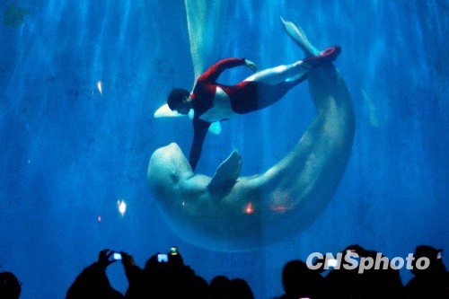 哈尔滨极地馆动物过大年。中新社发 姚庭山 摄