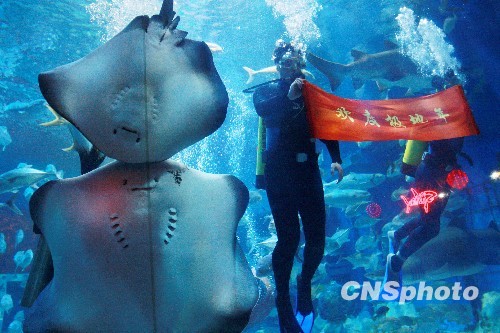 哈尔滨极地馆动物过大年。中新社发 姚庭山 摄