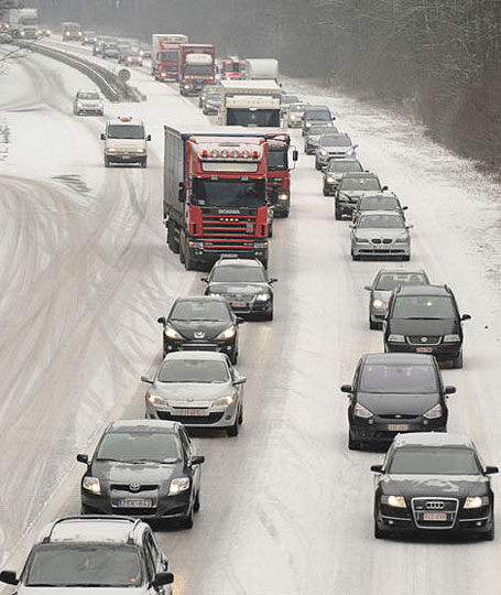 图:比利时大雪 堵车总长达938公里(2)