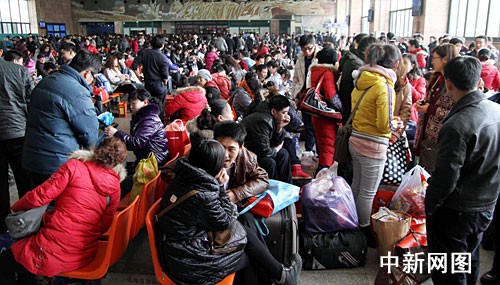 图为准备乘车的人们在候车大厅等待。刘玉明 摄