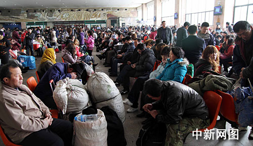 图为准备乘车的人们在候车大厅等待。刘玉明 摄
