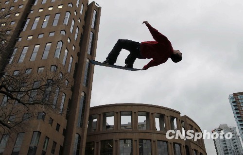 图为“空中飞人”为冬奥会助兴。中新社发 盛佳鹏 摄