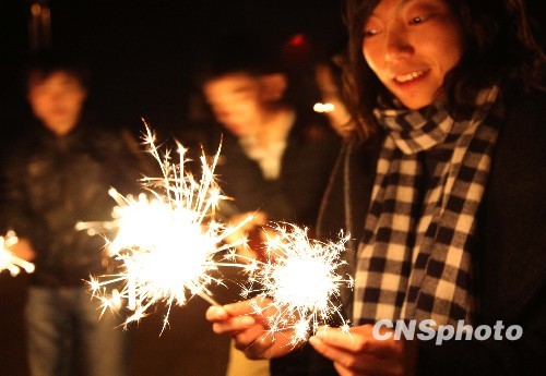 云南众多市民燃放烟花,庆祝新春佳节的到来。中新社发 刘冉阳 摄
