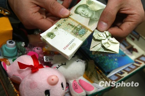 图为店主宫业龙正在整理寄存在店里的信物。中新社发 富田 摄