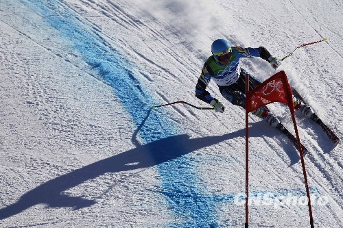 当地时间2月19日,2010年温哥华冬奥会高山滑雪男子超级大回转的比赛在温哥华惠斯勒公园滑雪场圆满落幕,来自挪威的选手斯文达尔摘得金牌。图为瑞典选手Patrik Jaerbyn在比赛中。