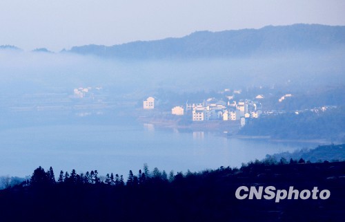 黄山脚下黟县塔川出现罕见“流云”景观(2)