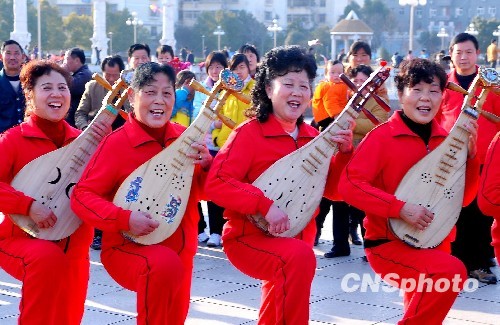 2月21日,社区“乐夕阳组合”在广场弹唱民歌。连日来,江淮大地气温回升,广大群众纷纷走出家门,感受春天气息。当日,安徽滁州市人民广场热闹非凡,许多市民在此休闲娱乐,欢度“虎年”春天。