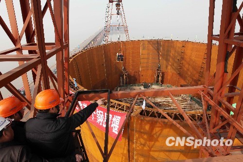 图:浙江嘉绍跨江大桥进入主桥承台施工(2)