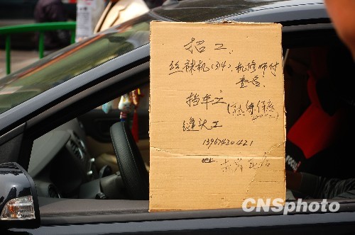 浙江省义乌市一些企业老板开着小轿车到劳务市场招工,如遇满意的员工,当即开车接回工厂上班。中新社发 许康平 摄