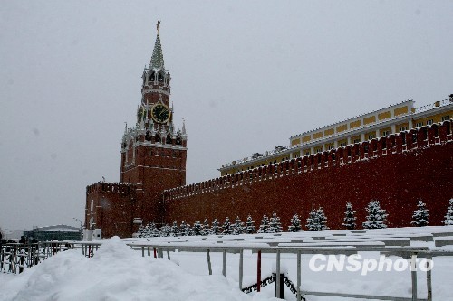 图为莫斯科红场雪中的克里姆林宫。中新社发 田冰 摄