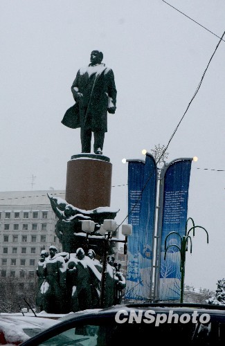 图为十月革命广场上的列宁雕像。中新社发 田冰 摄