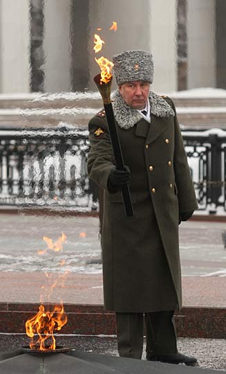 2月23日,一名俄罗斯军官点燃“长明火炬”。