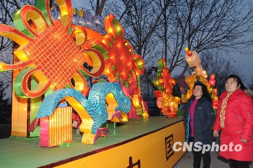 游客在山东省淄博市淄川区奎盛园欣赏花灯。中新社发 闫盛霆 摄