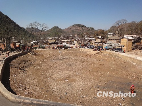 2月21日,云南省蒙自县西北勒乡他期口村委会用于生活用水的水塘已经干枯。中新社发 薛云 摄