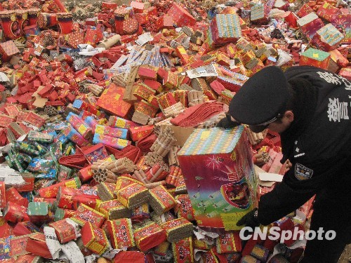 2月24日,北京对五千余箱非法、伪劣、超标烟花爆竹进行统一销毁。截至目前,全市累计查处非法烟花爆竹案件四百六十二起,收缴非法、伪劣、超标烟花爆竹两万六千余箱,处理人员五百六十一人。