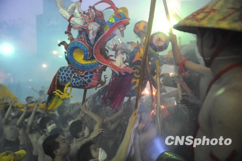 广西跑龙节引来50万人狂欢。中新社发 蒋雪林 摄