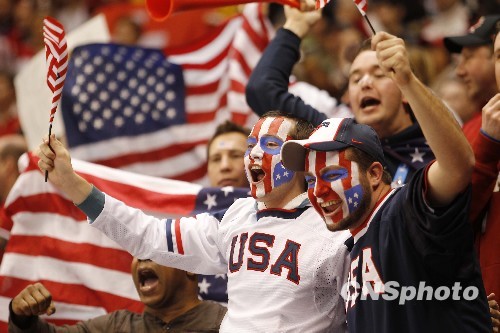 图为美国队球迷球场助阵。中新社发 盛佳鹏 摄