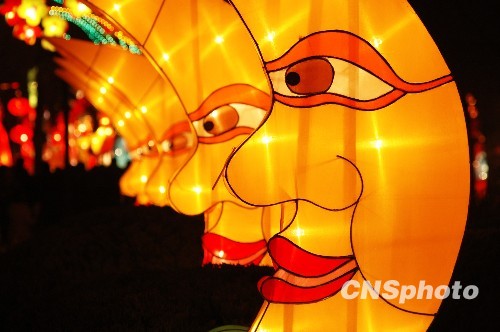 2月23日,在山东淄博植物园举行的2010年淄博花灯艺术节上,一组月亮主题花灯因设计造型别致幽默、色彩鲜艳夺目吸引了众多市民游客的目光。