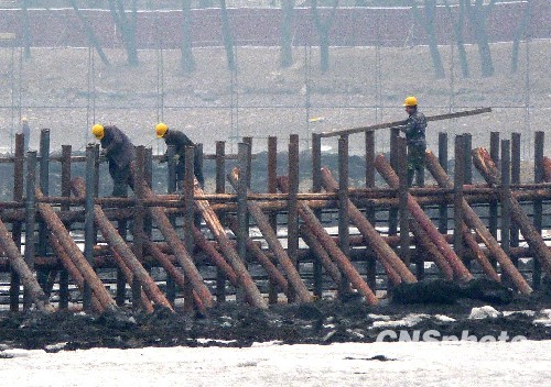 2010年2月24日,北京地铁9号线下穿玉渊潭的掘进工程正在湖底下方17米处悄然进行,北京玉渊潭东湖46万立方米湖水已全部放干,施工人员正在湖底搭建围堰并加紧进行相关清理准备工作。