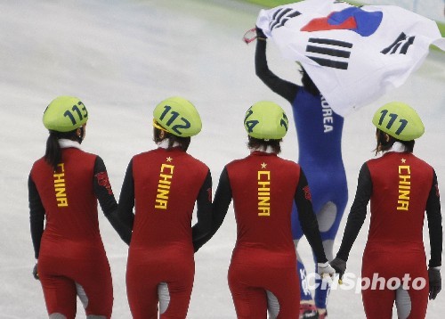 当地时间2月24日,2010年温哥华冬奥会短道速滑女子3000米接力决赛在温哥华太平洋体育馆结束,中国队获得冠军,韩国队因犯规,无缘奖牌。