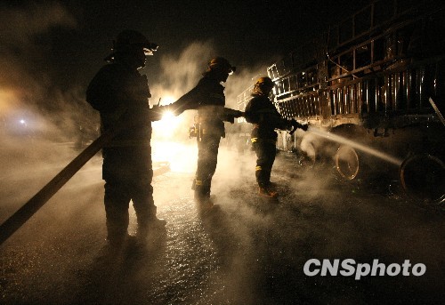 2月25日20时30分,绵广高速二专线297KM处(龙洞背)发生一起危化物品运输车爆燃事故。一辆山东省军翔运输公司挂车拉运的甲基三乙氧基硅烷发生爆炸,并引发附近山林起火。事故发生后,四川广元市委、市政府高度重视,迅速组织灭火与疏散工作。经过现场300余名干部群众的全力扑救,山火于23时30分扑灭,过火面积10亩左右,车辆燃烧大火于凌晨零时左右熄灭,应急处置中无人员伤亡。现场清理基本结束,滞留车辆已恢复通行。事故原因及责任正在调查之中。