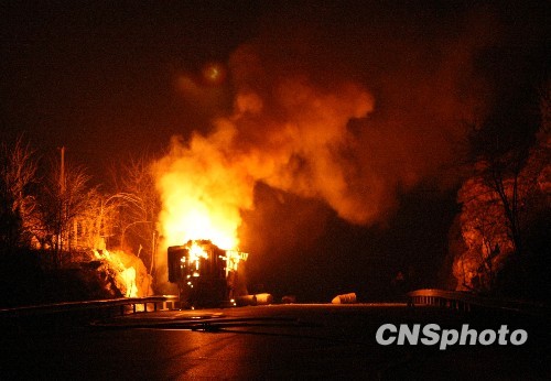 绵广高速二专线朝天境内发生危化物品爆燃事故(3)