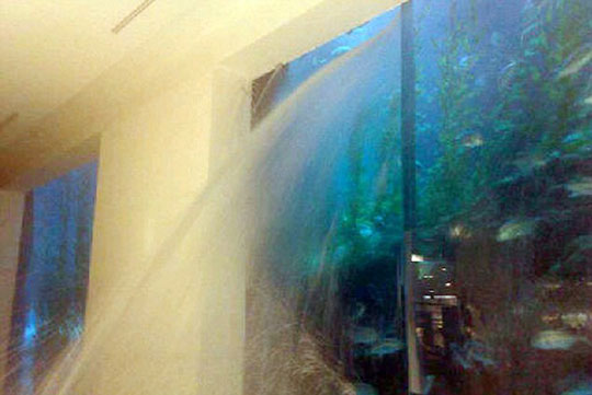 迪拜商场水族馆于2008年11月开幕,供游客观赏的玻璃纤维外墙宽32.8米,高8.3米,号称全球最大,馆内饲养超过85种海洋生物,包括400条鲨鱼和溽鱼,总数达3.3万条。哈利法塔上月开幕后事故频生,先有升机降出现故障,本月初位于第124层的观景台也告关闭,至今仍未重开。
