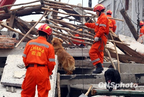 组图:中国国家地震救援队进行救援演示(4)