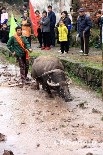 组图:安徽黄山举行农耕大赛闹元宵(4)