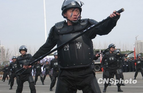 2月27日,辽宁巡特警在汇报演练。为维护社会治安稳定,加强和改进应急处置工作,提高处置重大突发事件能力和构建全时空巡逻防控网络,辽宁将在今年五月底前完成所有县及县级市的巡特警组建工作。中新社发 沈殿成 摄