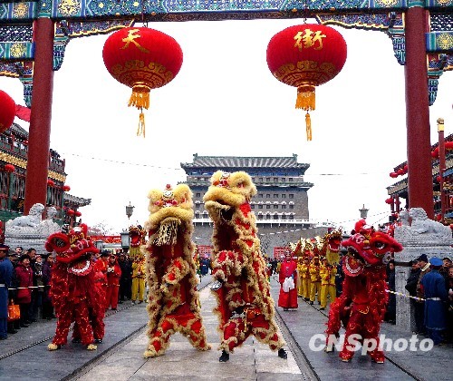 2月28日上午,北京前门大街元宵节“上元灯会”盛装开幕,进行了充满民俗风味的表演仪式及踩街活动,整条大街龙腾狮舞、人头攒动,洋溢出浓郁喜庆的节日氛围。据悉,此次前门上元灯会恢复并提升明清时期在前门地区举行的上元灯会。前门大街商户和全国的能工巧匠云集前门大街,将自己制作的花灯进行展示,游客通过赏灯、猜灯谜、提灯游玩等形式将体验到灯会的乐趣。 中新社发 玉龙 摄