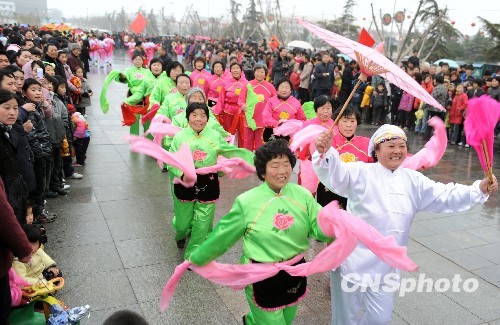 2月28日是农历虎年正月十五元宵佳节,安徽省亳州市谯城区在魏武广场举行大型民俗表演,市民们跳秧歌、划旱船,载歌载舞,热热闹闹喜庆元宵佳节。中新社发 张延林 摄