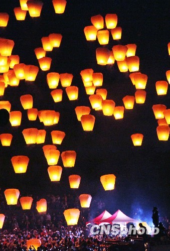 一年一度的庆元宵台北县平溪天灯节28日在平溪山谷举行,数万民众前来施放天灯祈福。中新社发 耿军 摄