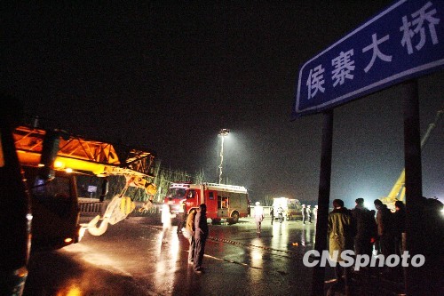 图为事故发生地的侯寨大桥上的救援车辆。中新社发 王中举 摄