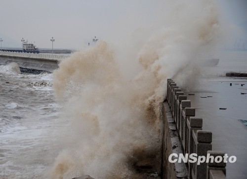 图:连云港海边大风降温掀起滔天巨浪(2)