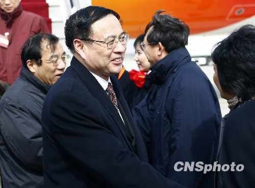 图为上海市政协主席冯国勤等抵达北京。中新社发 杜洋 摄