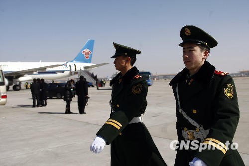 3月2日,武警在北京首都机场执勤。中新社发 杜洋 摄